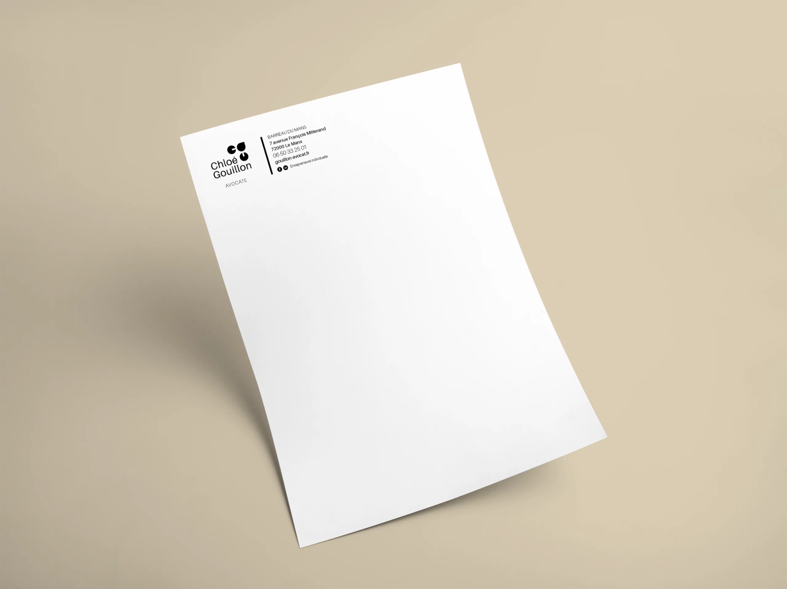 Comment se démarquer de ses confrères quand on est une jeune avocate spécialisée en droit public en Sarthe ? Chloé Gouillon est à la tête d’un cabinet à taille humaine et proche de ses clients. Elle intervient auprès des particuliers, des entreprises, des petites collectivités locales ou encore des institutions. J’ai réalisé pour elle, en freelance, un logo unique qui lui ressemble.