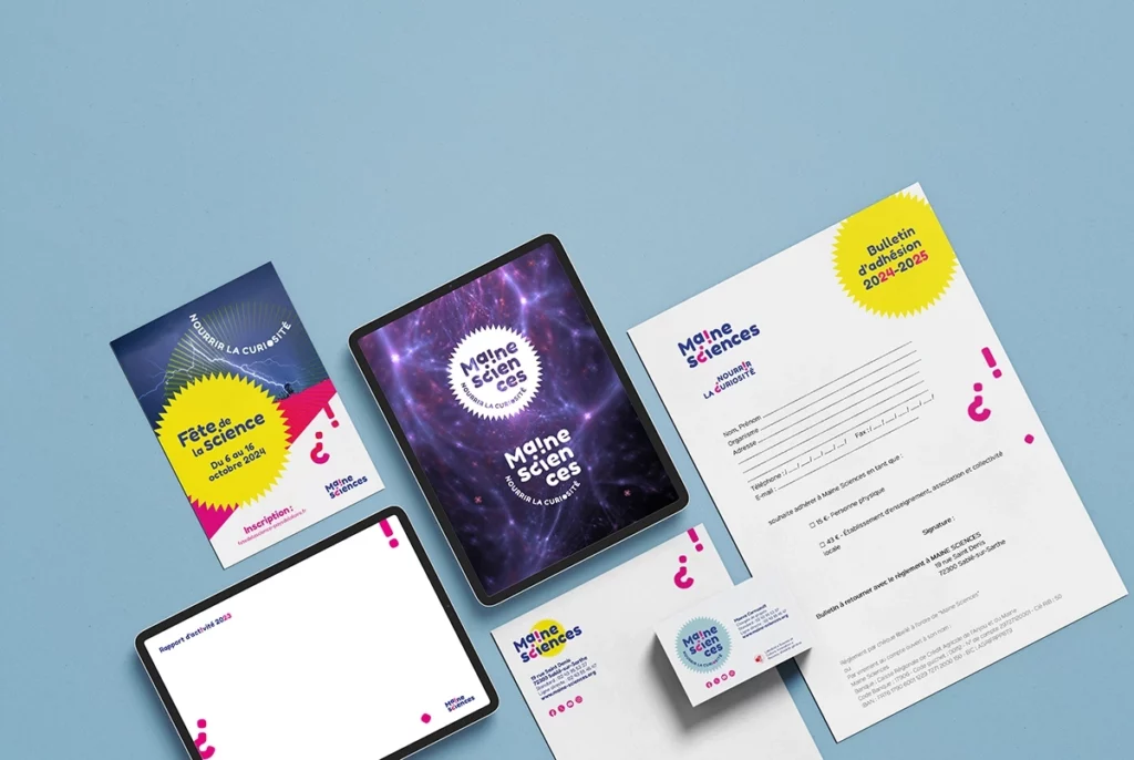 Après validation définitive de la piste retenue, je peux passer aux déclinaisons : j’adapte aux différents formats prévus, aux supports. Je conçois la charte graphique (pour une nouvelle identité visuelle).