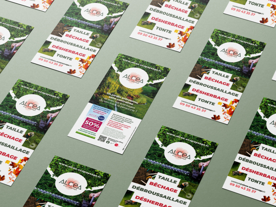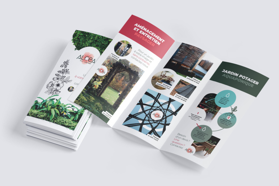 Alcéa-écopaysage, comme son nom l’indique c’est une entreprise spécialisée dans l’aménagement des espaces verts. Mais il fallait bien trouver quelqu’un pour créer leur carte de visite originale ainsi que leur identité graphique. Et qui de mieux placée qu’une graphiste ? 😊