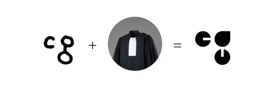J’ai imaginé un jeu graphique avec ses initiales C & G, une subtile traduction symbolique avec un clin d’œil à la toge, vêtement porté lors des audiences. La simplicité du logo en noir et blanc, inscrit dans un carré forme parfaite par excellence, permet quelques fantaisies pour l’impression des cartes de visite avec notamment un marquage à chaud « Or ». Il évoque le dynamisme, l’humanité et donne confiance comme le souhaitait ma cliente.