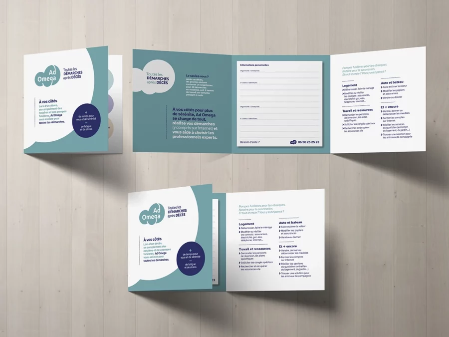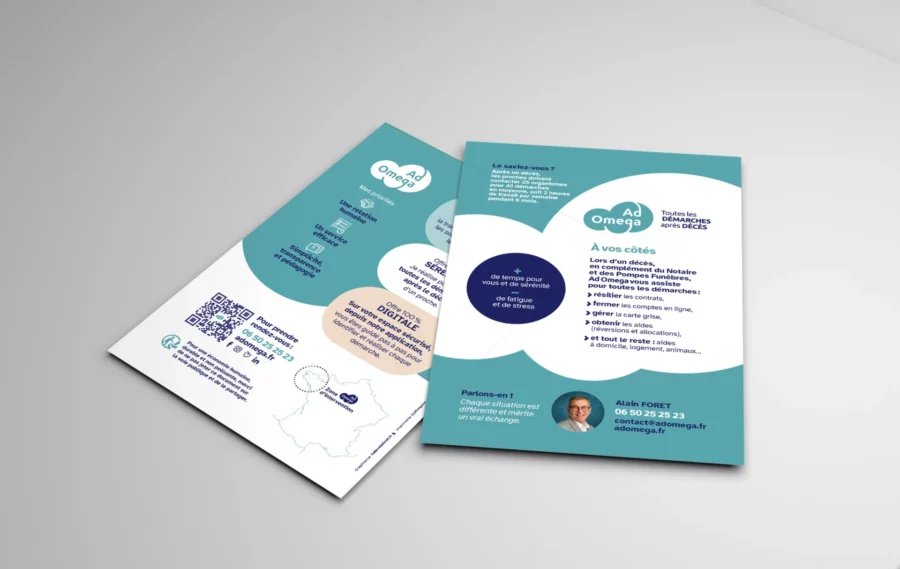 Quand j’ai travaillé sur la création du logo d’entreprise d’Ad Omega, mon objectif était simple : traduire la mission d’accompagnement de cette entreprise dédiée aux démarches après décès. En quelques traits, j’ai voulu offrir une identité qui apaise, guide et inspire confiance.