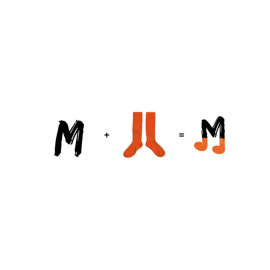 J’ai donc réfléchi à une identité visuelle simple à reproduire sur chaque affiche et flyer de concert. Ce thème festif, symbiose entre une lettre M à la typographie crayonnée ne se prend pas au sérieux, habillée de chaussettes colorées, pour former finalement une note de musique sautillante.