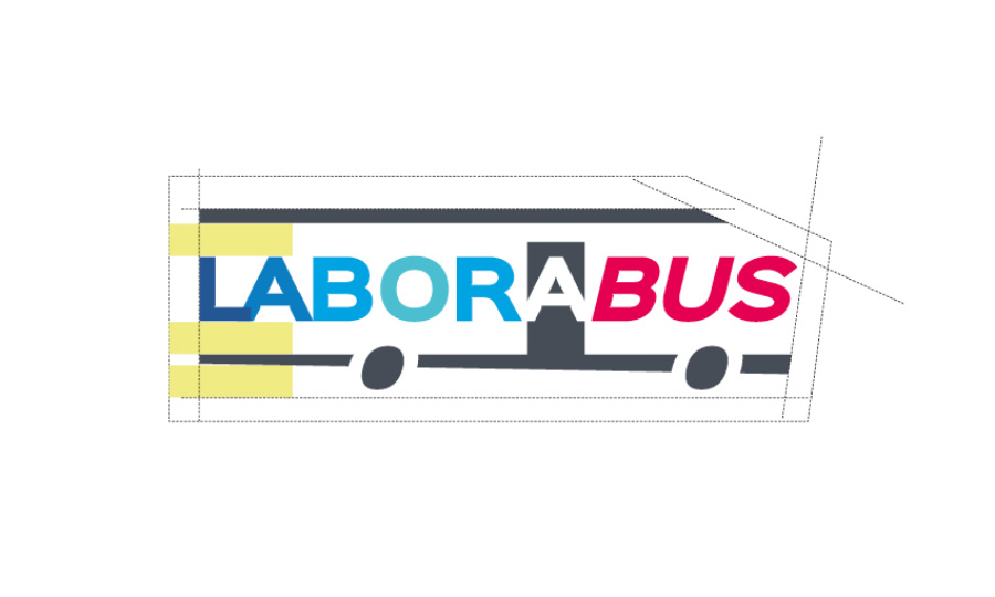 Pour le LABORABUS, mon rôle, a été d’imaginer un logotype qui serait apposé sur le bus en harmonie avec l’habillage existant du bus, sur le plan des couleurs et de la typographie. Puis aussi utilisé pour la papeterie et les invitations.