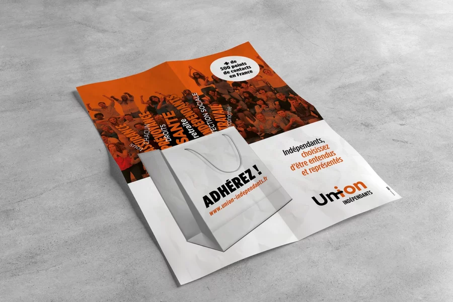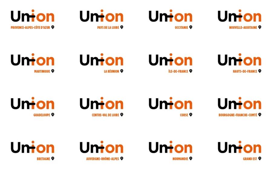 L’important est de mettre en lumière l’unité qui va se créer derrière ce mouvement. Vous l’avez sans doute remarqué dans le mot « union », se cachent deux petits mots qui ont toute leur importance « uni » et « on ». Lors de la création du logo, il est alors essentiel pour moi de les mettre en avant, grâce également au signe typographique «trait d’union» tout en reprenant le tiret utilisé dans l’url : union – indépendants.fr. De plus la création de ce dernier devait aussi rappeler celui de la CFDT afin qu’ils soient associés visuellement.